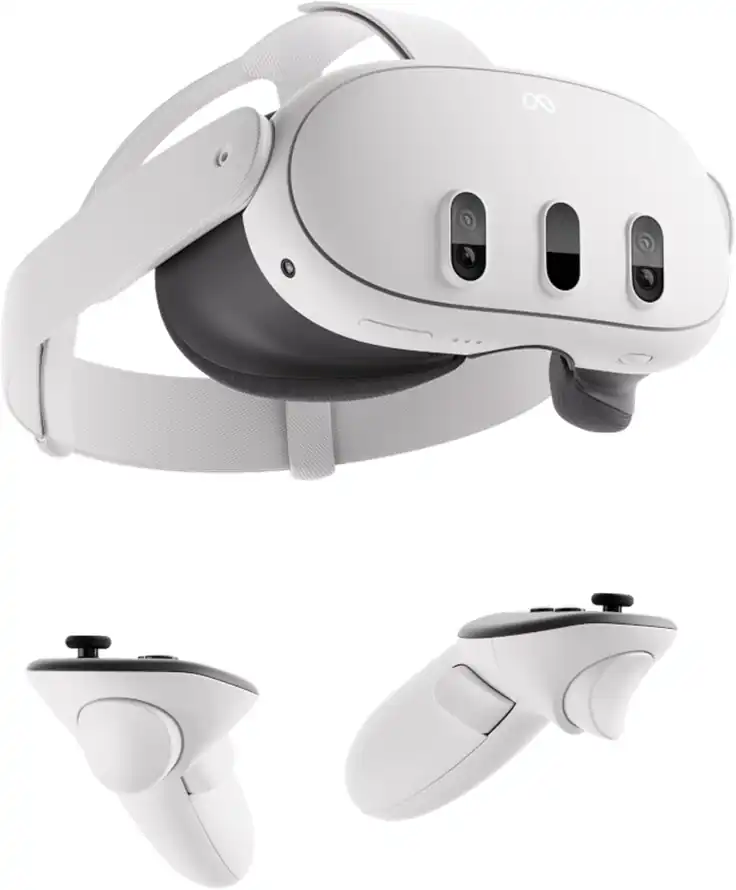 - Meta Quest 3 es el dispositivo de realidad virtual definitivo. Incluye Infinite Display, que permite disfrutar del campo de visión más amplio y expansivo que cualquier Quest haya ofrecido hasta la fecha. Disfruta de una resolución 4K*, una comodidad superior y la mayor capacidad de almacenamiento.* Dos pantallas (resolución de 2064 x 2208 por ojo) combinadas con la óptica Infinite Display de Meta.