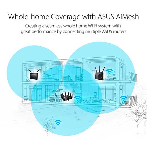 - Compatible con AiMesh: Conecta routers de ASUS compatibles y crea un versátil sistema Wi-Fi de red mallada para toda la casa