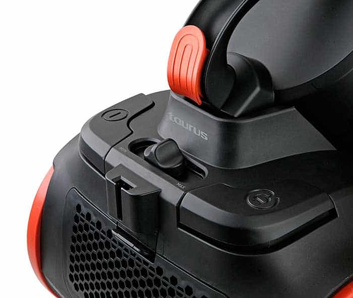 - Regulador de potencia para ajustar la potencia de succión según la aspiración de suelos duros, tapicerías, moquetas, alfombras o cortinas